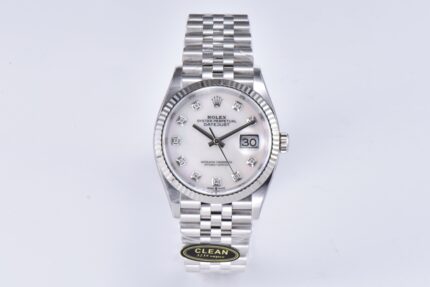 Rolex Datejust 36 White Mica Diamond Dial Fluted Bezel Jubilee Bracelet 904L Steel 3235 Movement