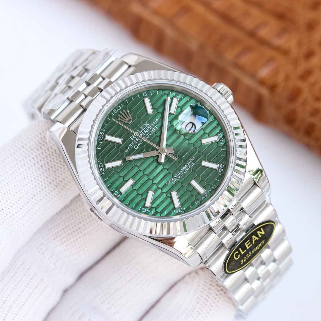 Rolex Datejust 126300 Green Dial Smooth Bezel Oyster/Jubilee Bracelet 904L Steel 3235 Movement 41mm Mens Watch