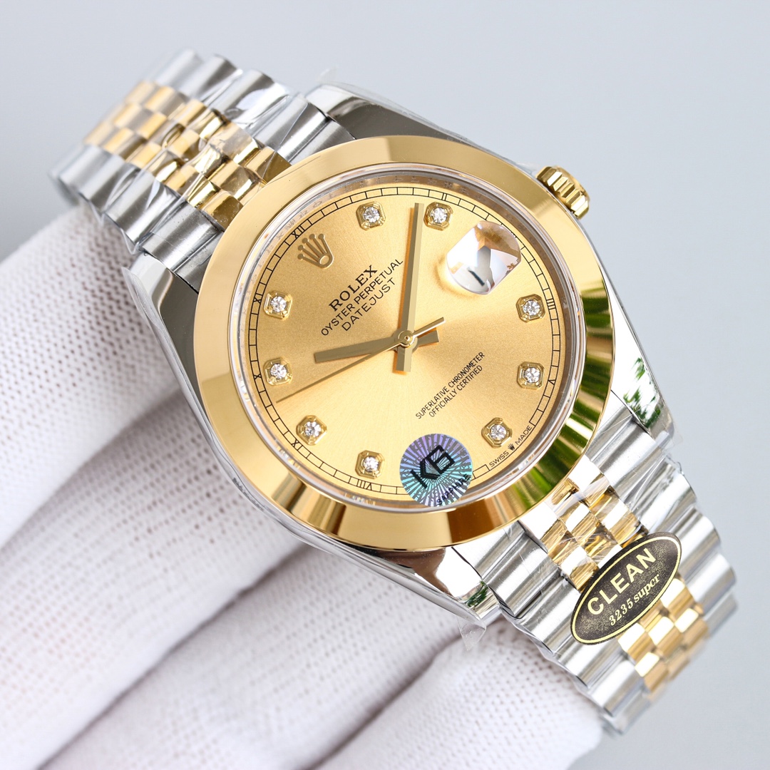 Rolex Datejust 126303 Champagne Diamond Dial Domed Bezel 41mm Oyster/Jubilee Bracelet Watch 904L Steel And Yellow Gold 3235 Movement