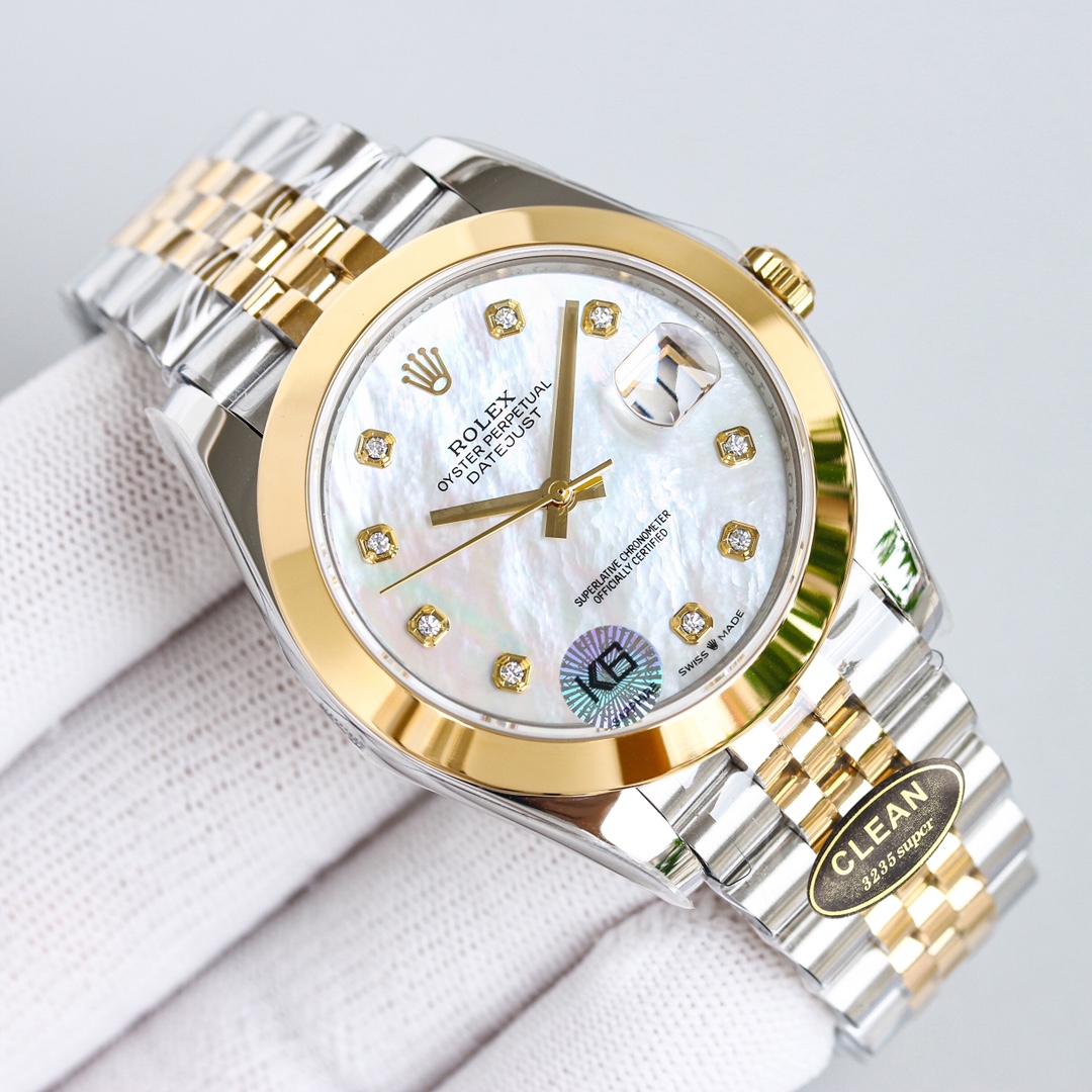 Rolex Datejust 126333 White Dial Fluted Yellow Gold Bezel Oyster/Jubilee Bracelet 904L Steel 3235 Movement 41mm Mens Watch
