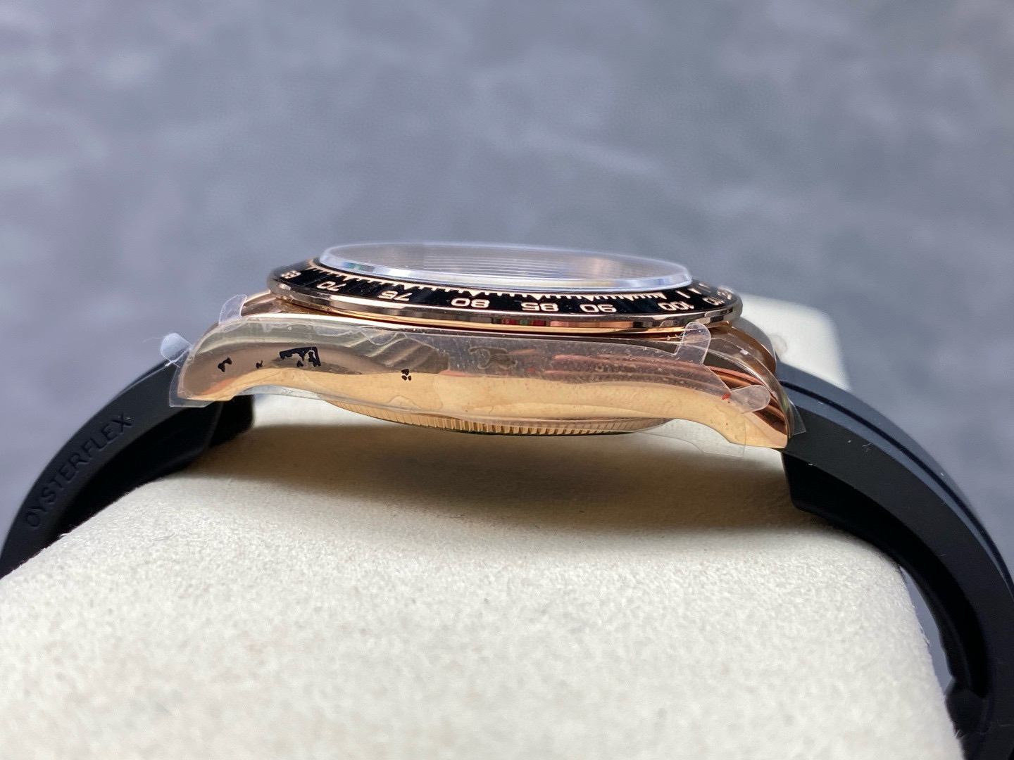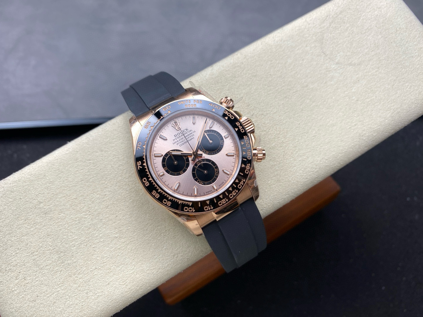 Rolex Daytona 126515 Sundust&Black Dial Black Ceramic Bezel Rose Gold Case Oysterflex Rubber Strap 4131 Movement