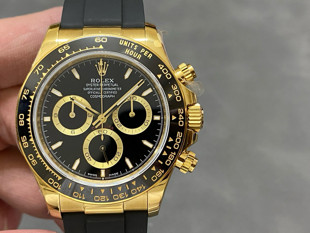 Rolex Daytona 126518 Black&Gold&Black Dial Black Ceramic Bezel Oysterflex Rubber Strap 4131 Movement
