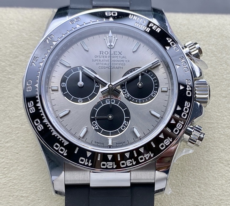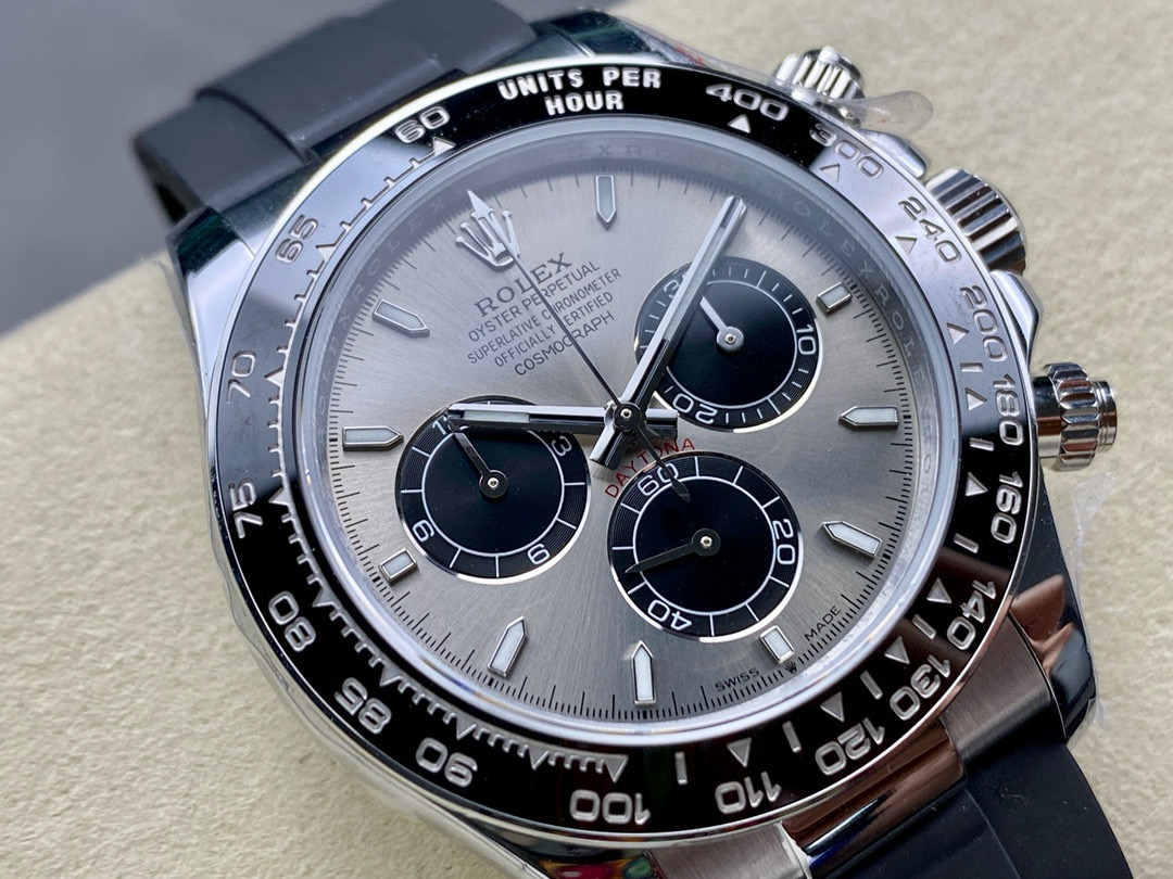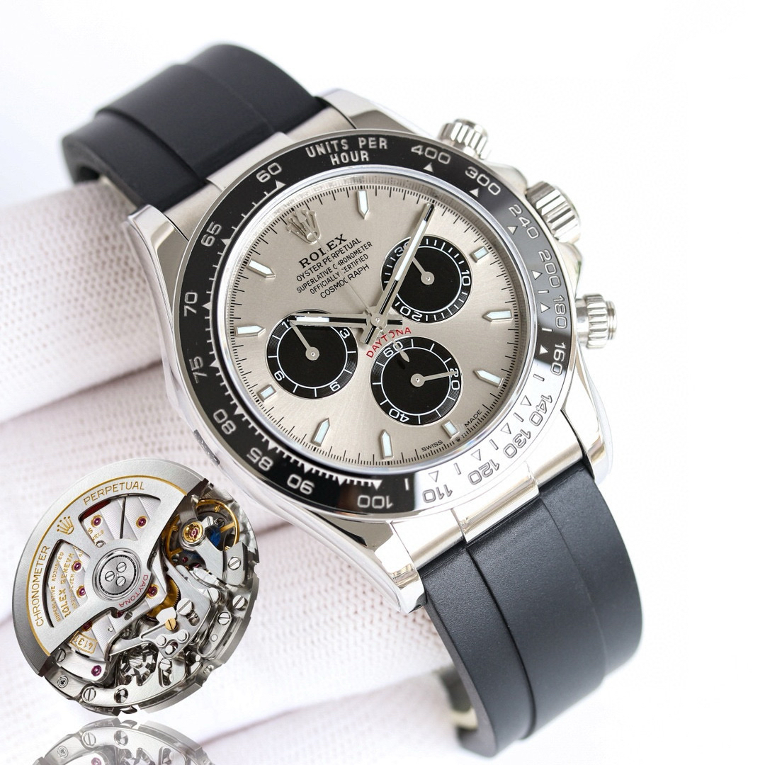 Rolex Daytona 126519 Silver&Black Dial Black Ceramic Bezel Oysterflex Rubber Strap 4131 Movement