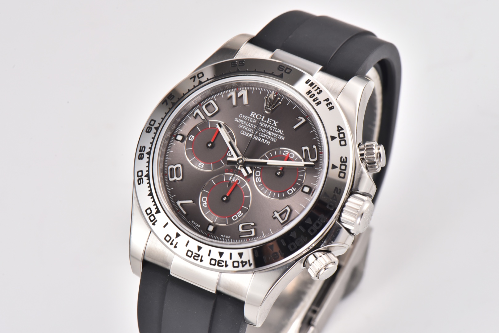 Rolex Daytona Chronograph Grey Arabic Dial Steel Bezel Black Rubber Strap 7750/4130 Movement