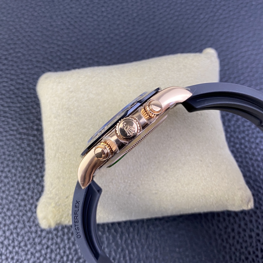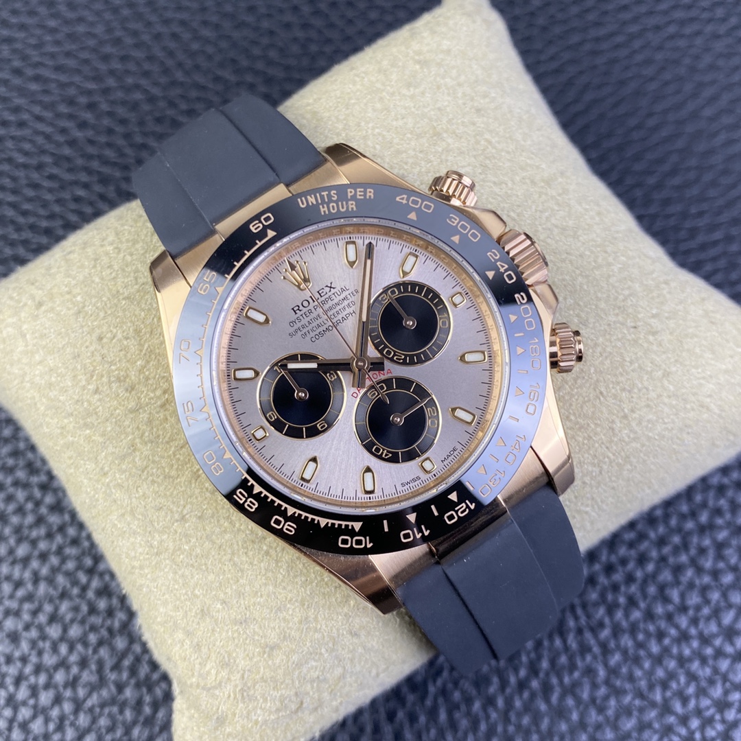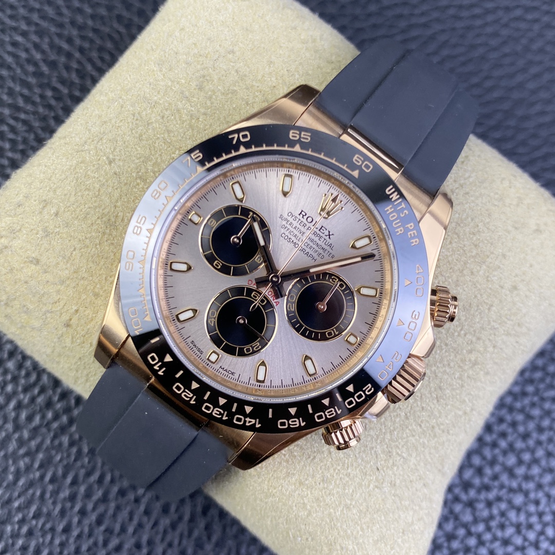 Rolex Daytona Chronograph Silver&Black Dial Black Ceramic Bezel Rose Gold Case Black Rubber Strap 7750/4130 Movement