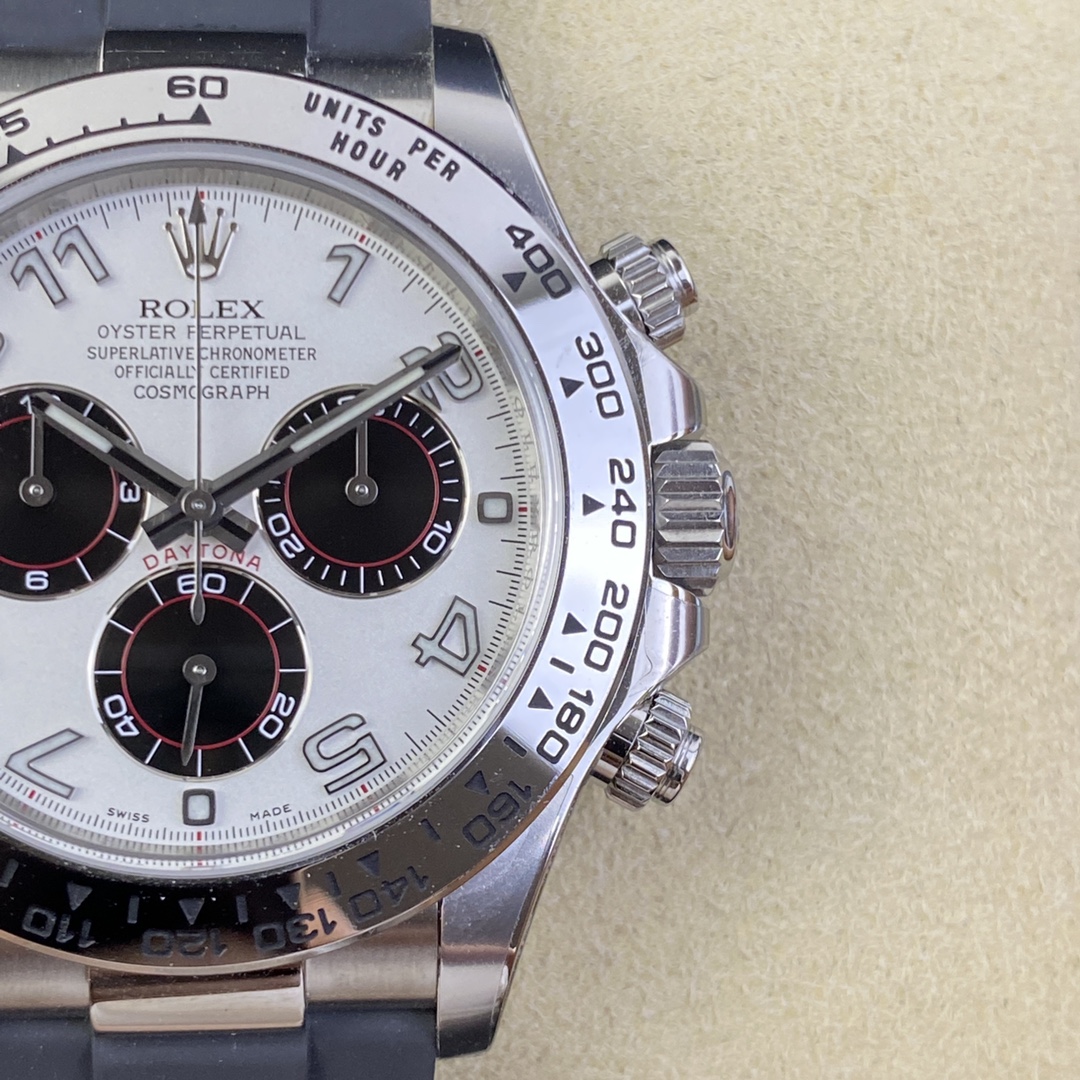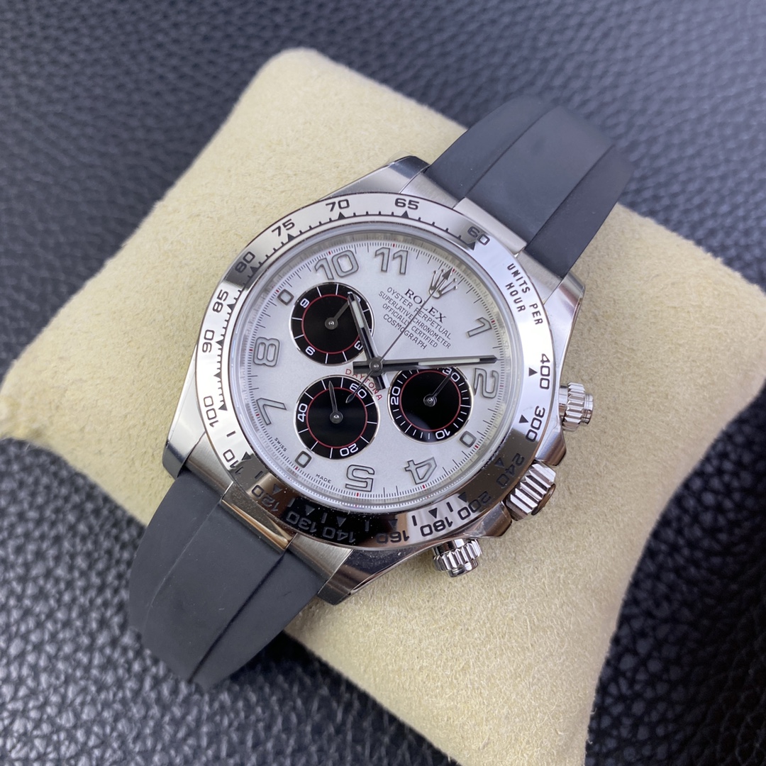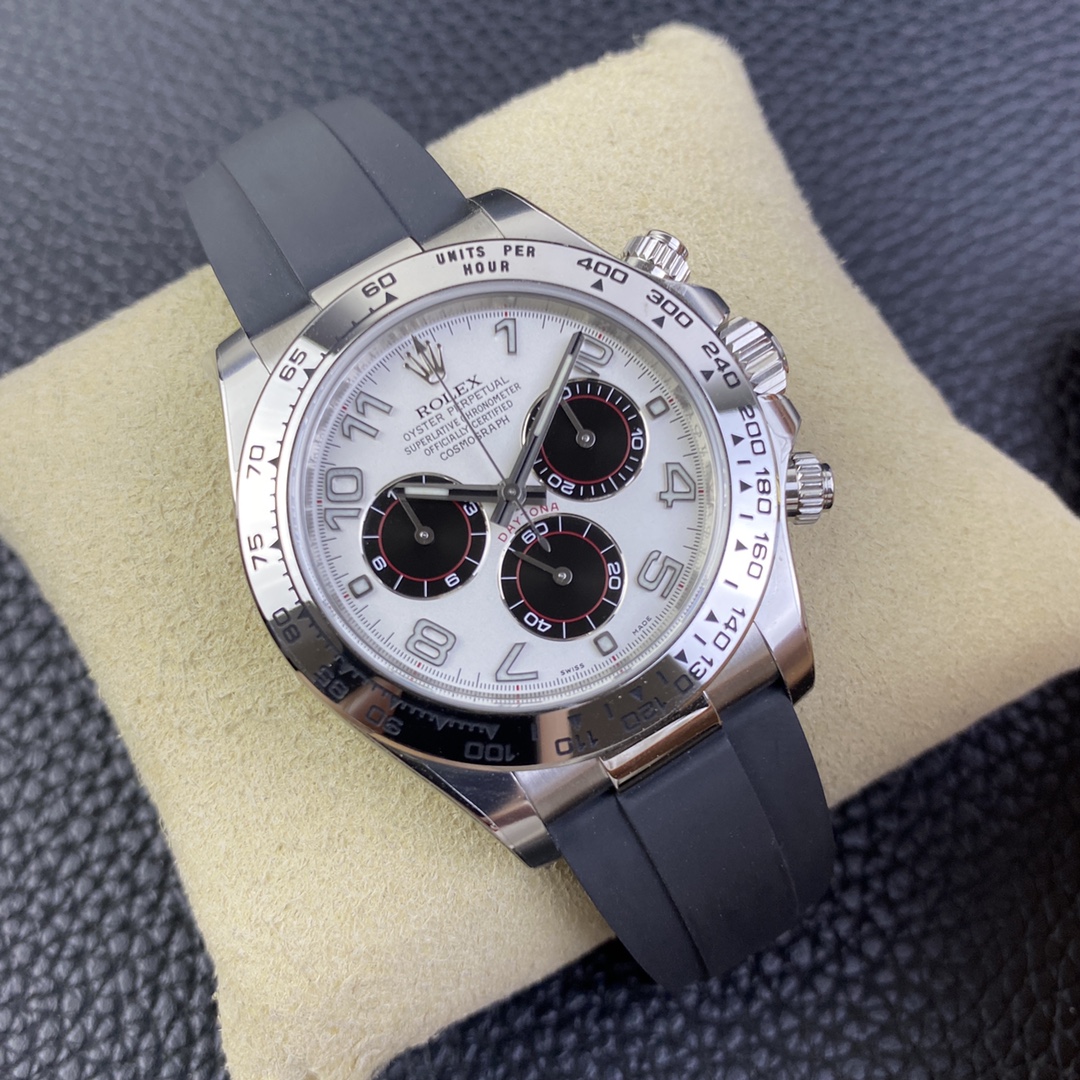 Rolex Daytona Chronograph White&Black Arabic Dial Stainless Steel Bezel&Case Black Rubber Strap 7750/4130 Movement