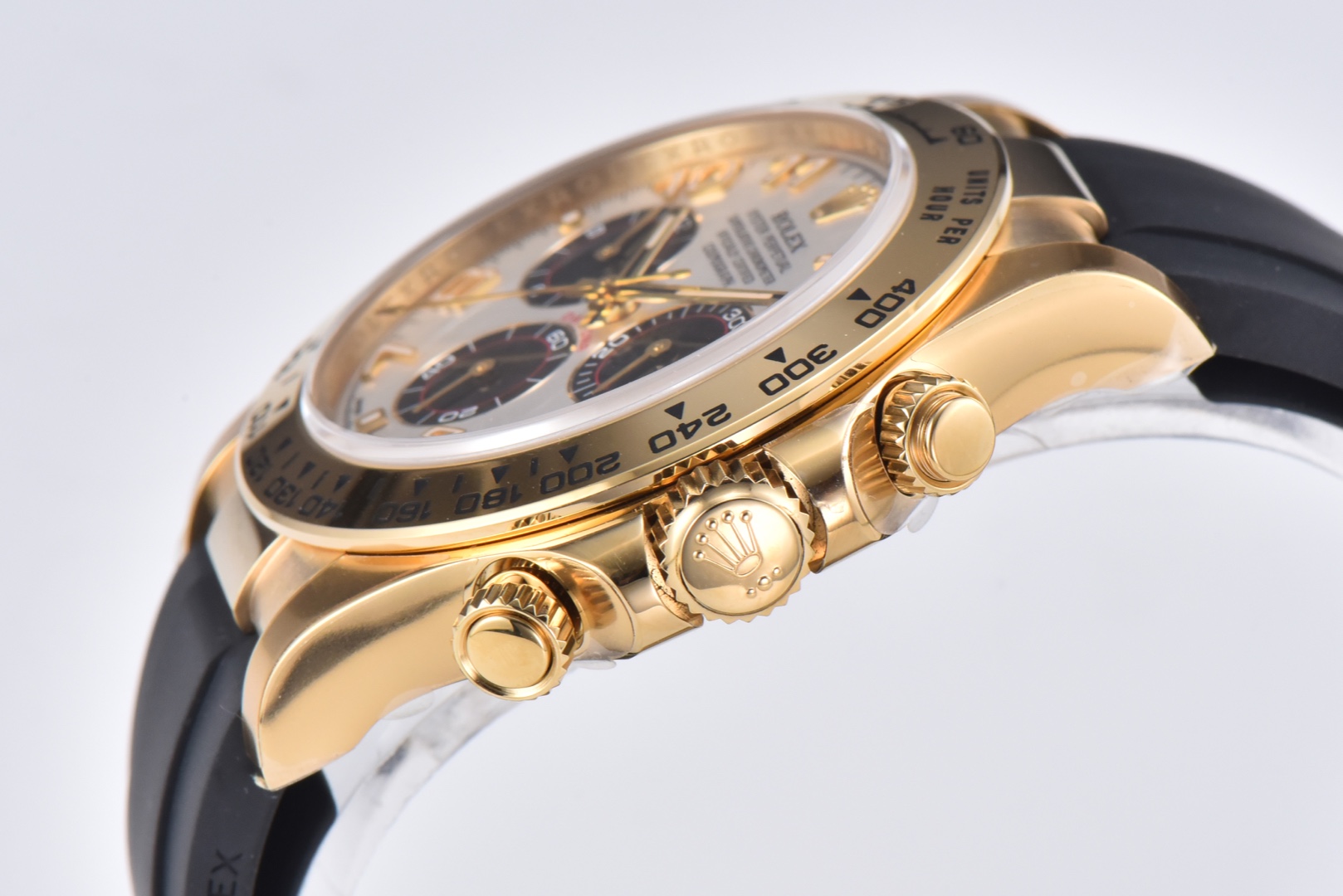 Rolex Daytona Chronograph White&Black Arabic Dial Yellow Gold Bezel&Case Black Rubber Strap 7750/4130 Movement