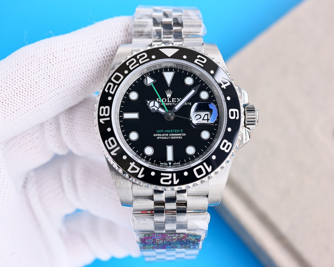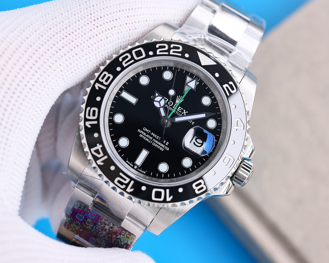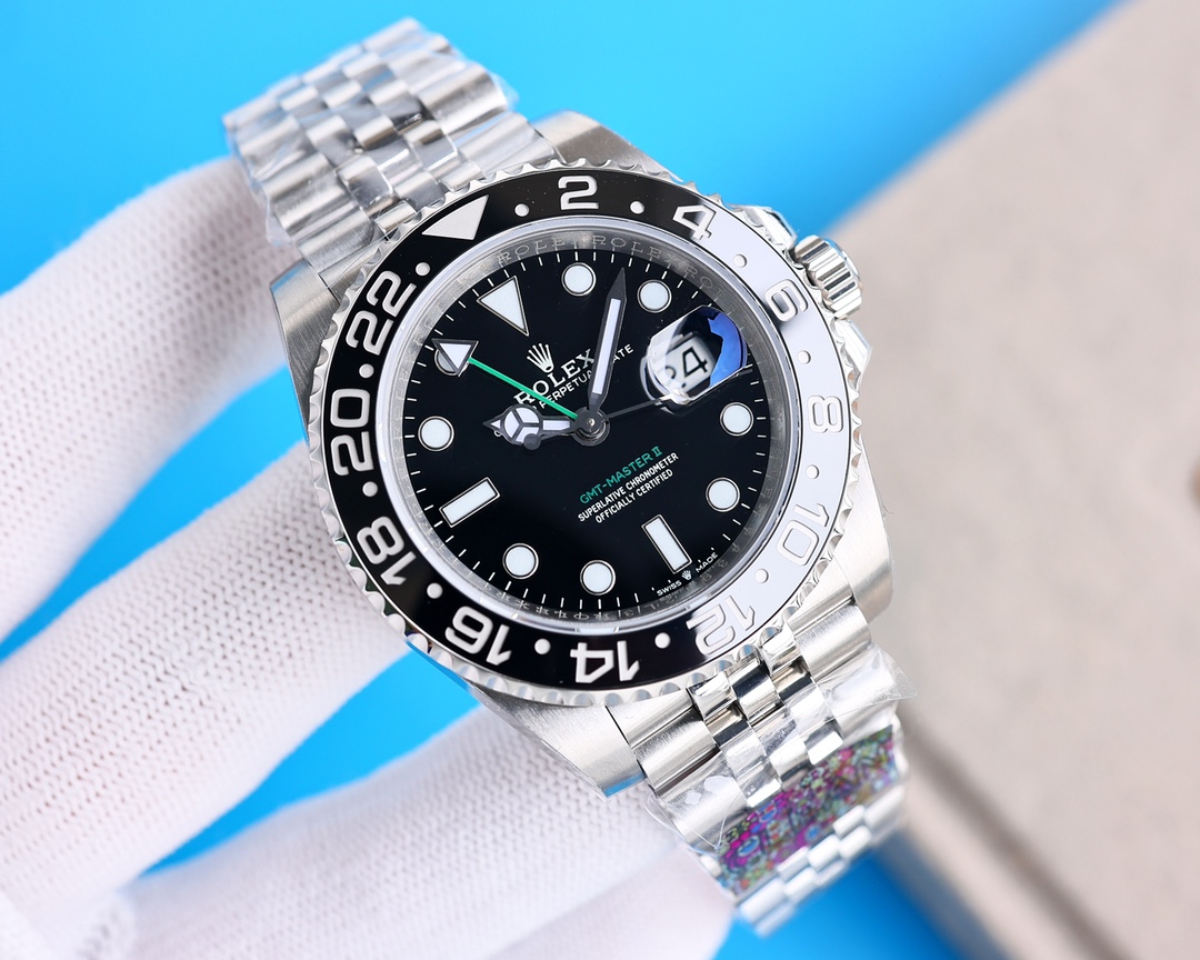 Rolex GMT Master Black Dial Black Ceramic Bezel Jubilee Bracelet 904L Steel 3186/3285 Movement