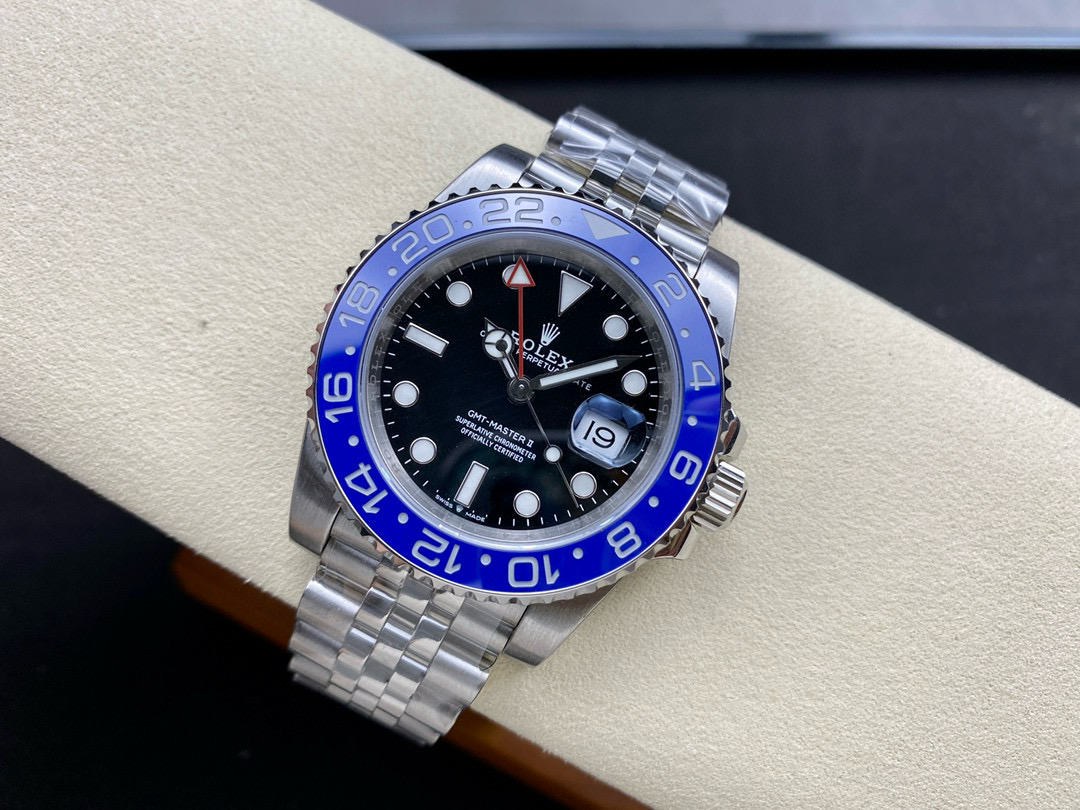 Rolex GMT Master Black Dial Blue Ceramic Bezel Jubilee Bracelet 904L Steel 3186/3285 Movement