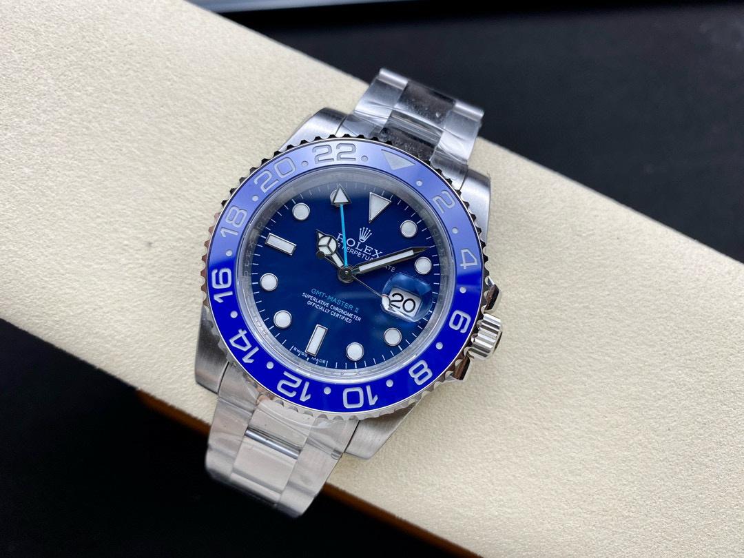 Rolex GMT Master Blue Dial Blue Ceramic Bezel Oyster Bracelet 904L Steel 3186/3285 Movement