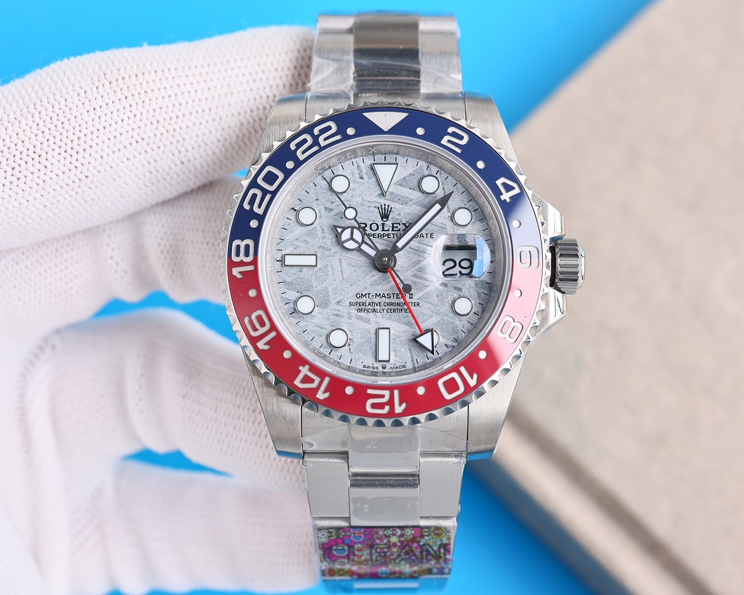 Rolex GMT Master Meteorite Dial Blue&Red Ceramic Bezel Oyster Bracelet 904L Steel 3186/3285 Movement