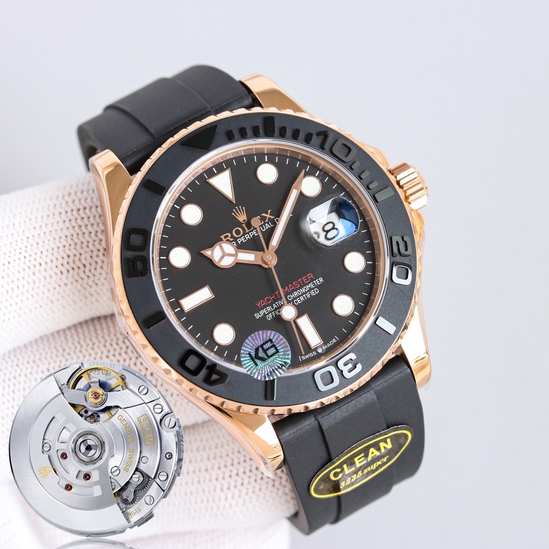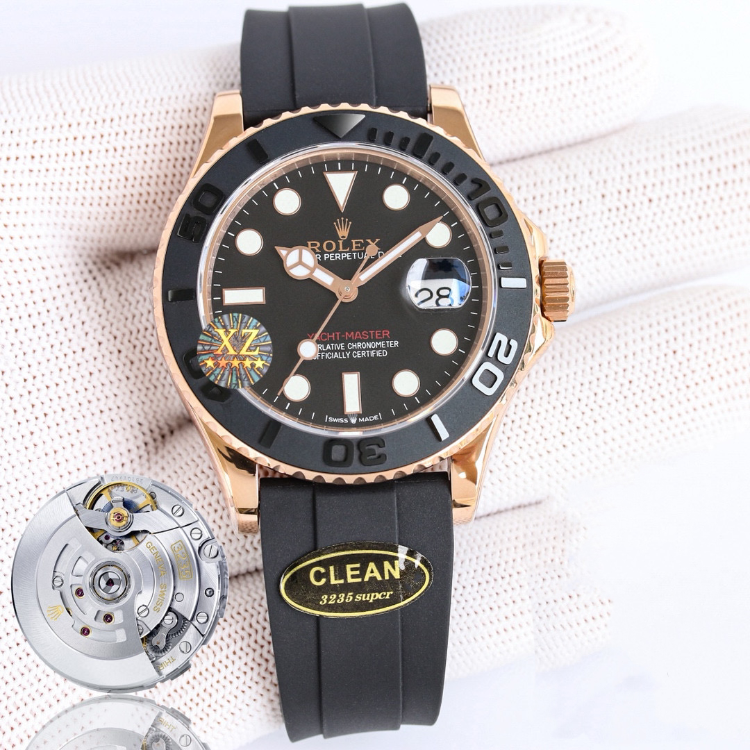 Rolex Yacht Master 42mm Black Dial 904L Steel Rose Gold Case Oysterflex Rubber Strap 1:1 Best Edition 2836/3235 Movement