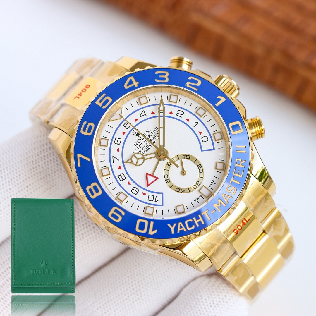 Rolex Yacht Master II 44mm White Dial Blue Ceramic Bezel 904L Steel Full Yellow Gold 1:1 Best Edition 7750 Movement